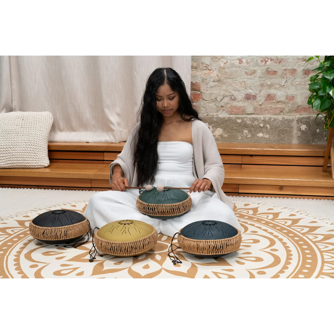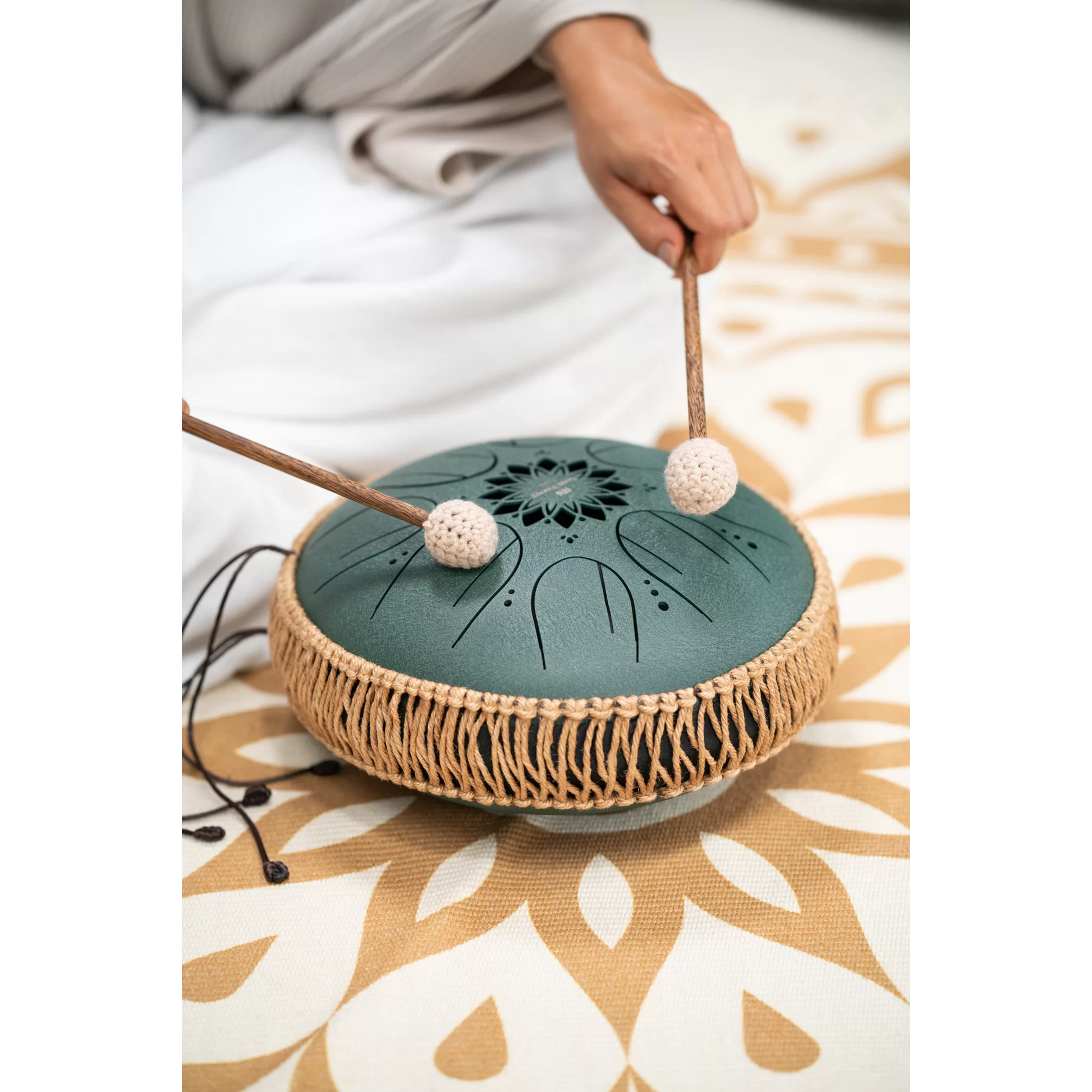 10" Steel Tongue Drum, F# minor, 8 Notes, 432 HZ, Dark Green