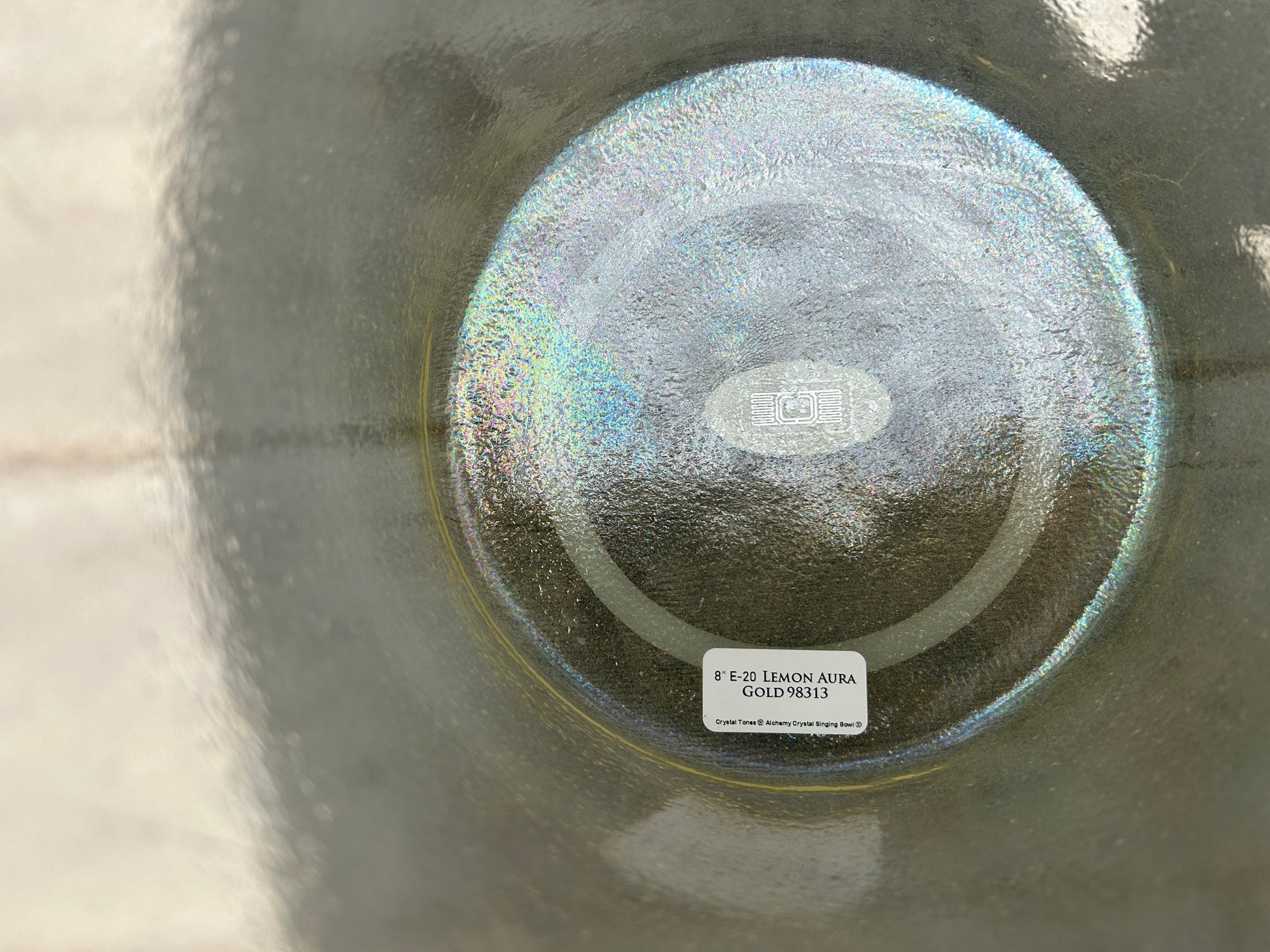 8" E -20 LEMON AURA GOLD ALCHEMY CRYSTAL SINGING BOWL