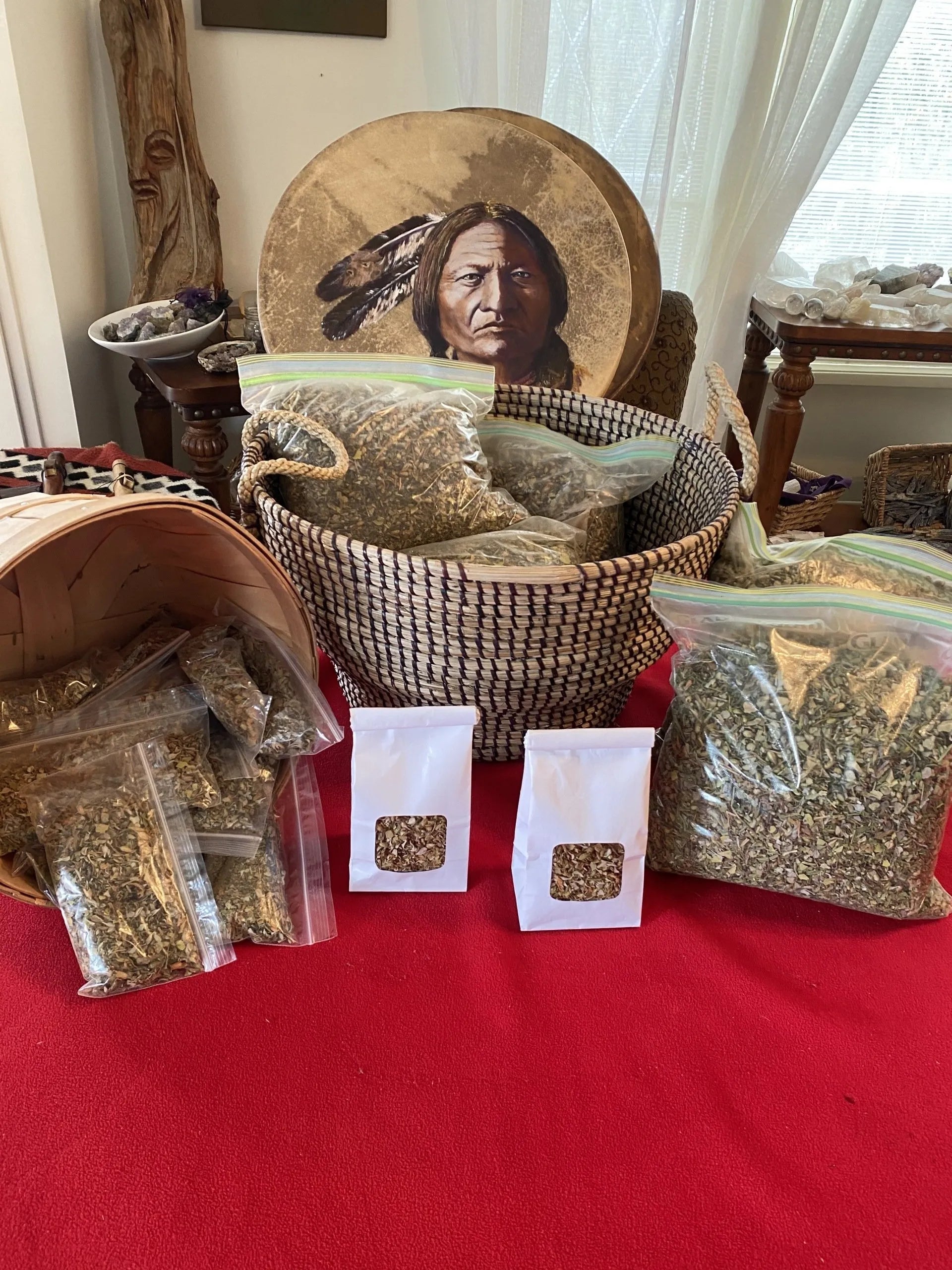 Beauty Way (Tobacco): Navajo and the right, the way, and the teachings were passed onto this Navajo man who gathers and blends this medicine. This includes a mixture of herbs by a medicine man who combines: green tip mountain smoke, purple tip mountain smoke, Deerway smoke, and White Mountain smoke. They are gathered in the four corner areas in the Colorado Mountains. Traditionally used in prayer for good luck while hunting and to ask for the beautiful way and go to the place of beauty in the spirit world. It can be used as a pipe smoke and for smudging, as well as an offering in prayer.