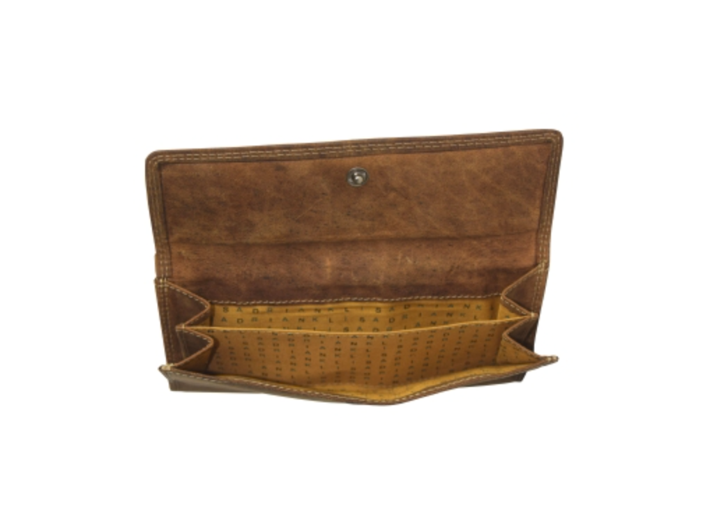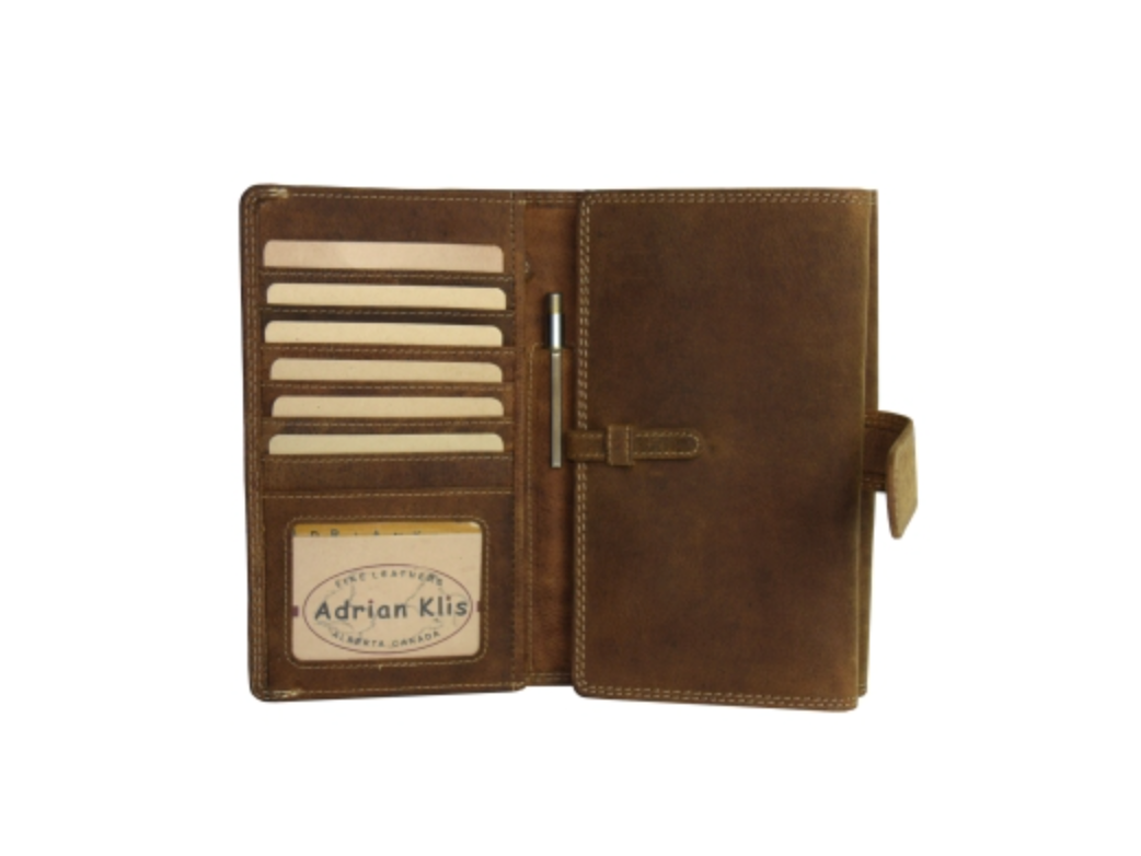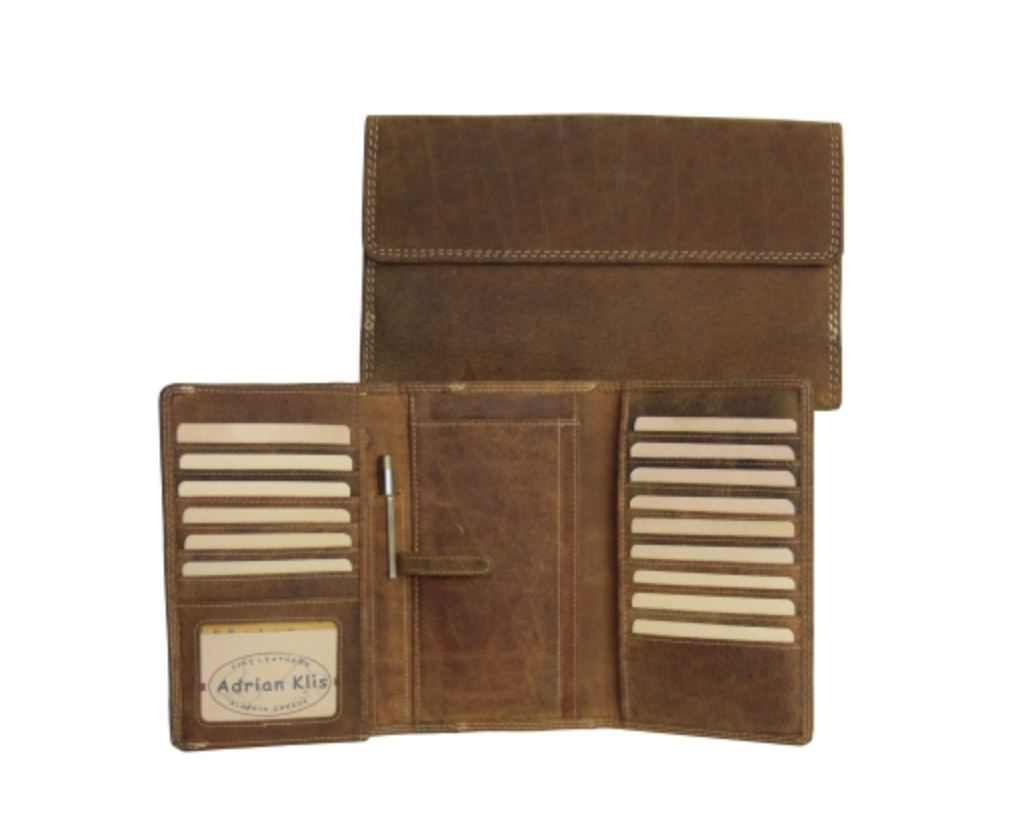 2 bill pockets, 15 CC, 3 side pockets, 1 ID pocket, 1 chequebook pocket, 1 pen holder, 2 zipper inside, 2 pockets outside closed with snap