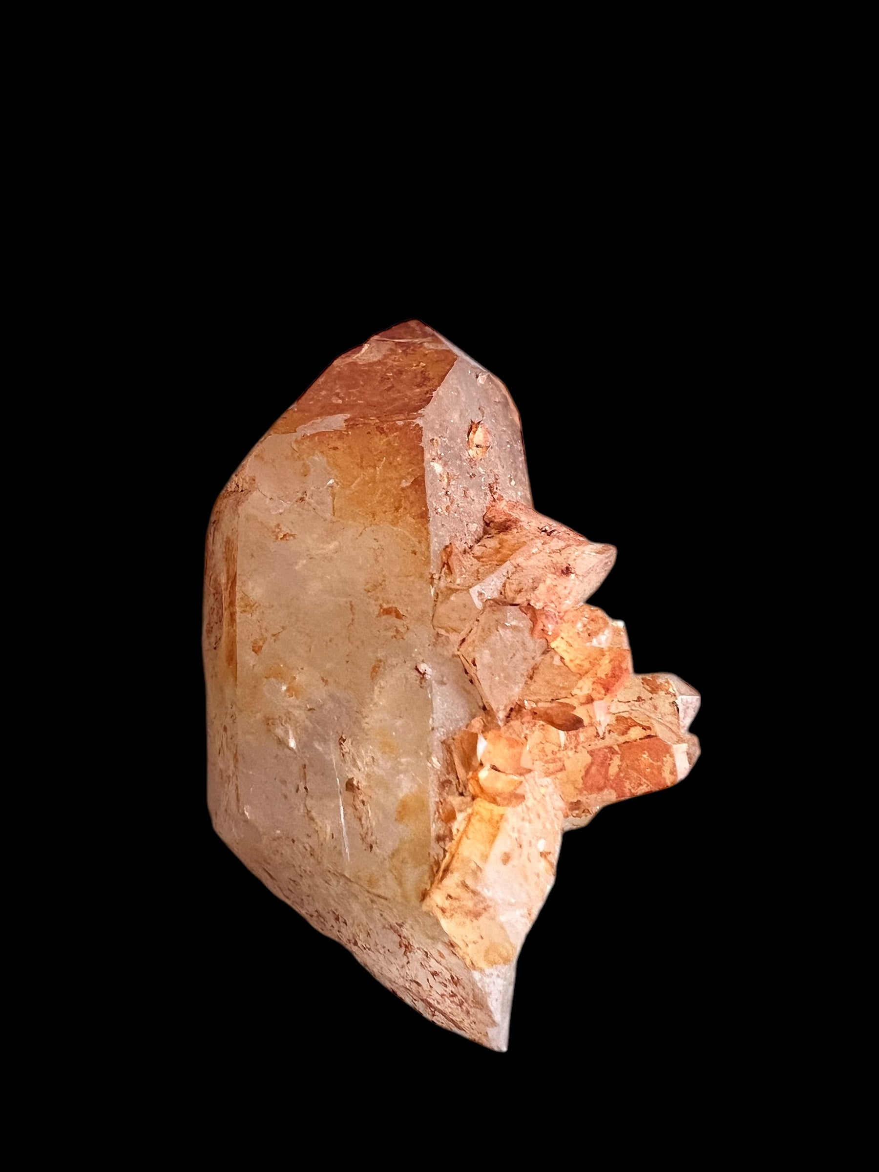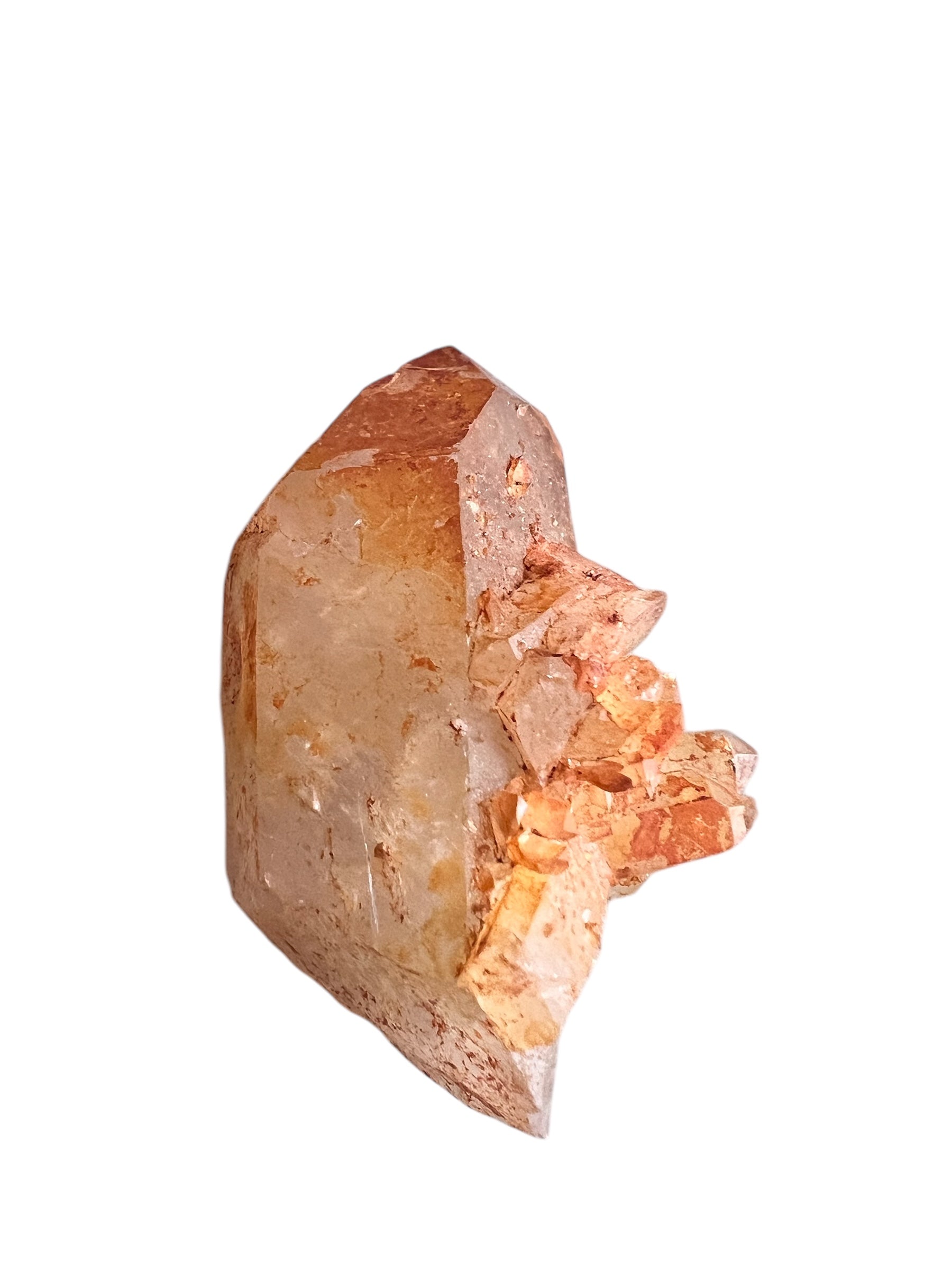 Description: Golden Healer Quartz, also known as Hematoid Quartz Crescent Moon. Golden Healer Quartz is the name of Quartz that is colored by the iron oxide trapped inside the crystal. They vary in color from pale yellow to a deep rust color. The yellow and brownish versions are known as Golden Healer Quartz. The red versions are known as Fire Quartz. Hematoid Quartz is becoming known as a highly transformational crystal that blends the amplifying properties of Quartz with the balancing properties of iron in the form of hematite. This crystal is full of love and is quite beautiful. May contain natural cracks or fractures.
