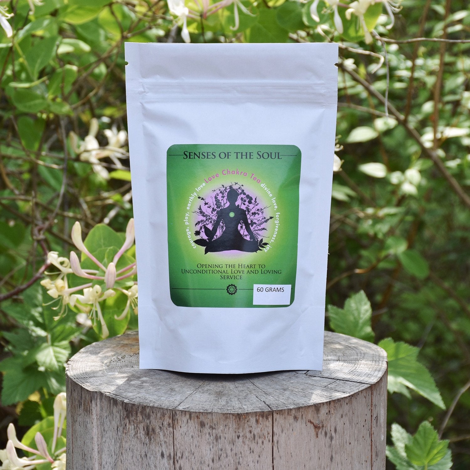 The Love Chakra Tea encourages love.  Whether it is the love of self, or the love of others, this tea will help you to find unconditional love, without co-dependancy, resentment, or neglect of self.  True love rings out from the heart with a soft radience that encompasses all it meets.  It is gentle and graceful, allowing for forgiveness of others and most of all yourself.  Love is needed for all relationships, whether the relationship you have with yourself, your lover, or your family.  It lives in a realm that knows no malice or discord.  Once you truly love yourself, loving others is as easy as breathing.  Self-worth becomes something to nourish, while bitterness fades away.  The Heart Chakra is the bridge between Heaven and Earth, creating balance between your Earthly and Spiritual purpose.  Indulge yourself in this tea when you find things beginning to darken, to bring light, love, and joy back into your life every time you open this bag.