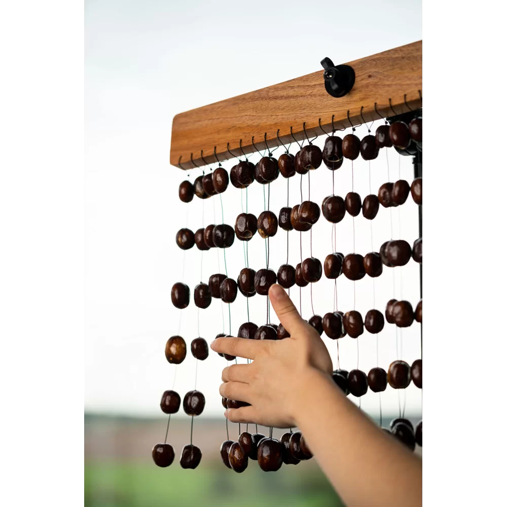 Pala seed nutshells, attached to a solid piece of mahogany, create a unique, versatile instrument.