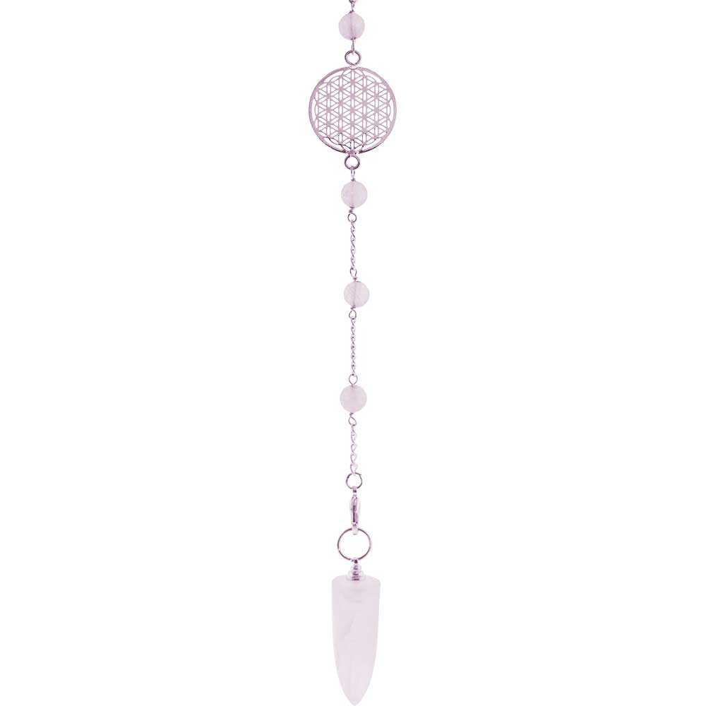 DESCRIPTION:This exquisite pendulum combines the calming power of rose quartz with the beauty of sacred geometry. The weight features a smooth, rose quartz cone, known to promote love, peace, and emotional healing. Delicate rose quartz beads grace the chain, adding a touch of elegance.