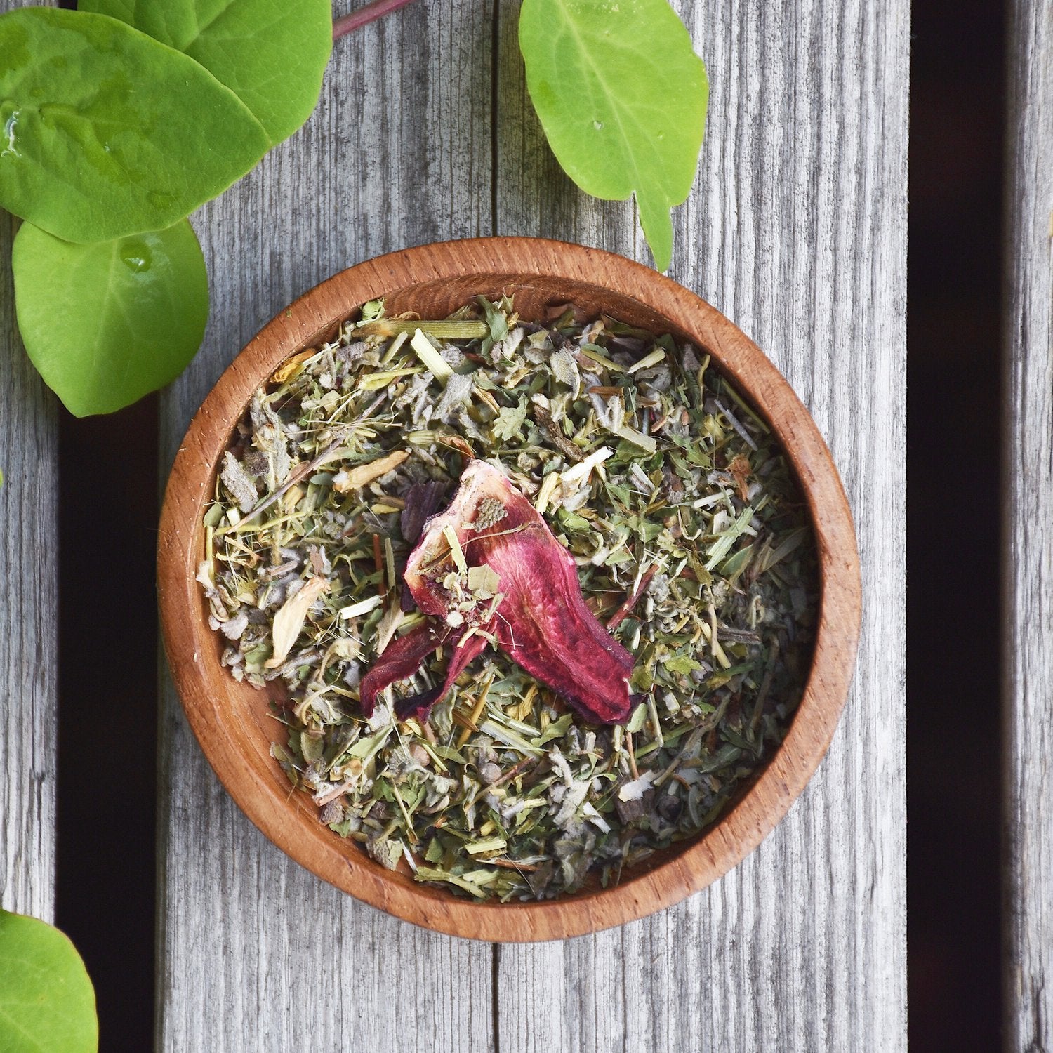 Ingredients: Sage, Red Clover, Damiana, St. John's Wort, Chaste Berry (Vitex Berry), Passion Flower, Licorice, Hibiscus Flower.