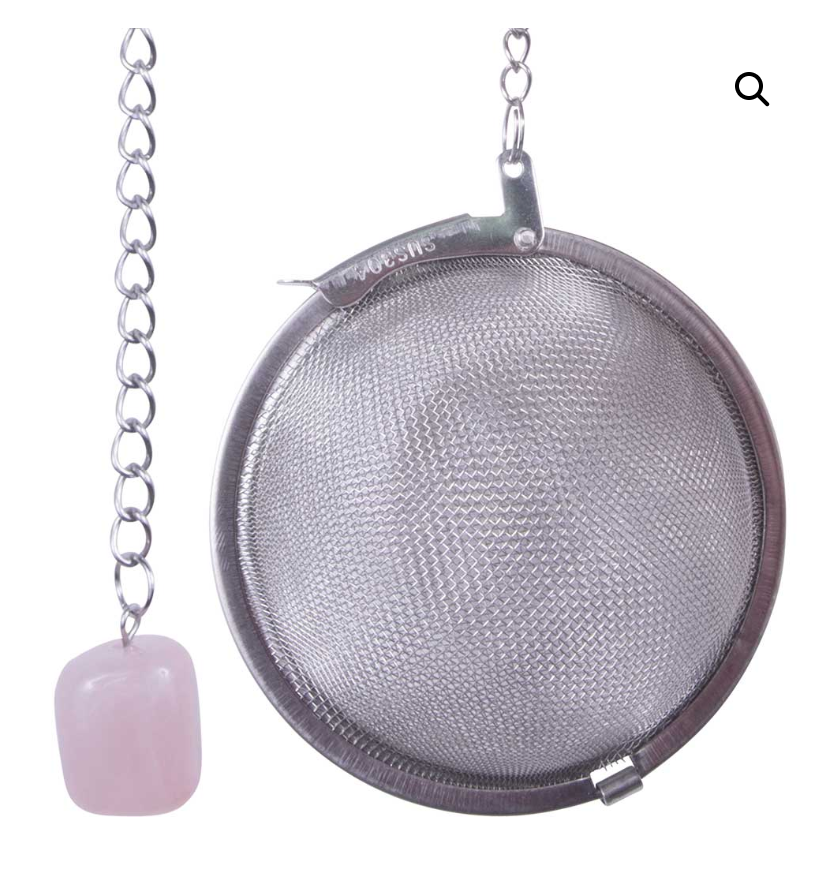 Brew flavorful teas effortlessly with our food-grade stainless steel infuser. Crafted for convenience, itÂ’s rust-resistant and easy to care for, making it an eco-friendly choice. Fill it with fresh or dried herbs to personalize your tea experience. Plus, the delicate rose quartz gemstone adorning the chain adds a touch of elegance while keeping it out of your cup. Let this semi-precious stone infuse your tea ritual with calming vibes, encouraging peace and inner harmony.