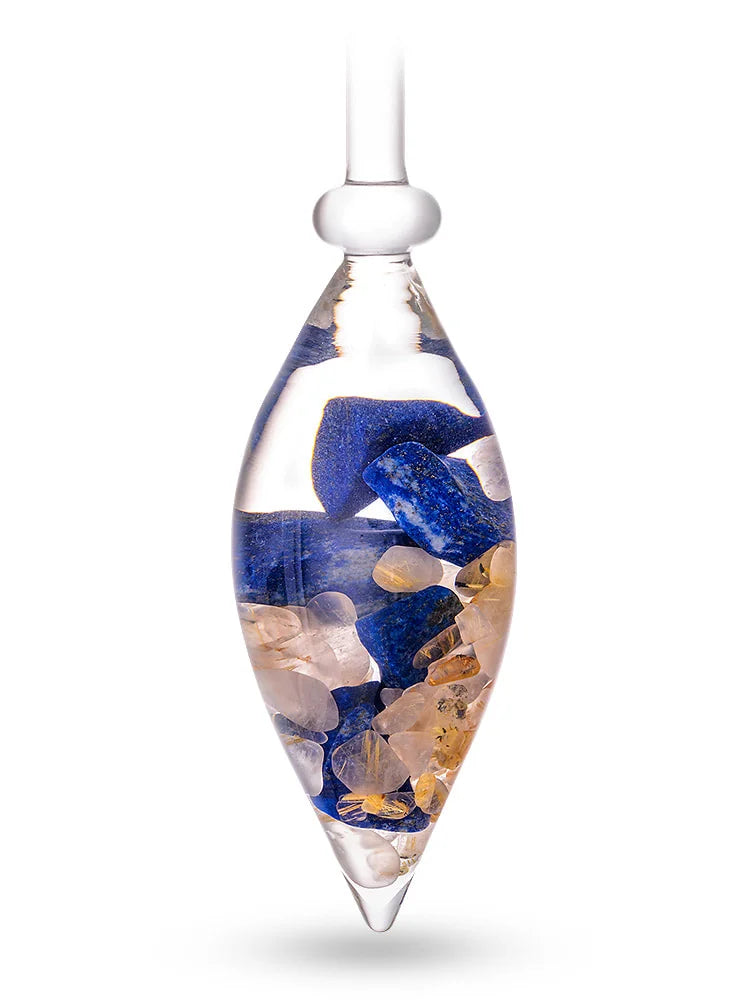 Change the world with your creativity and break fresh ground! Get inspired by enjoying a glass of GemWater from this enchanting combination of rutilated quartz and the deep, celestial blue lapis lazuli – a symbol for spirituality in ancient Egypt about 6,000 years ago. The beautiful, golden-streaked rutile is said to energize and to improve awareness. Your brain is made up of about 75% liquid. Research has revealed that drinking water when we feel thirsty boosts our brain's performance. Feed your brainpower every day with this very special blend of GemWater.