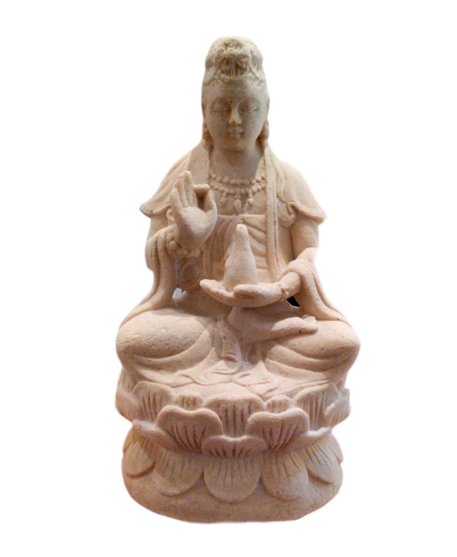 VOLCANIC STONE STATUE - QUAN YIN - 13″