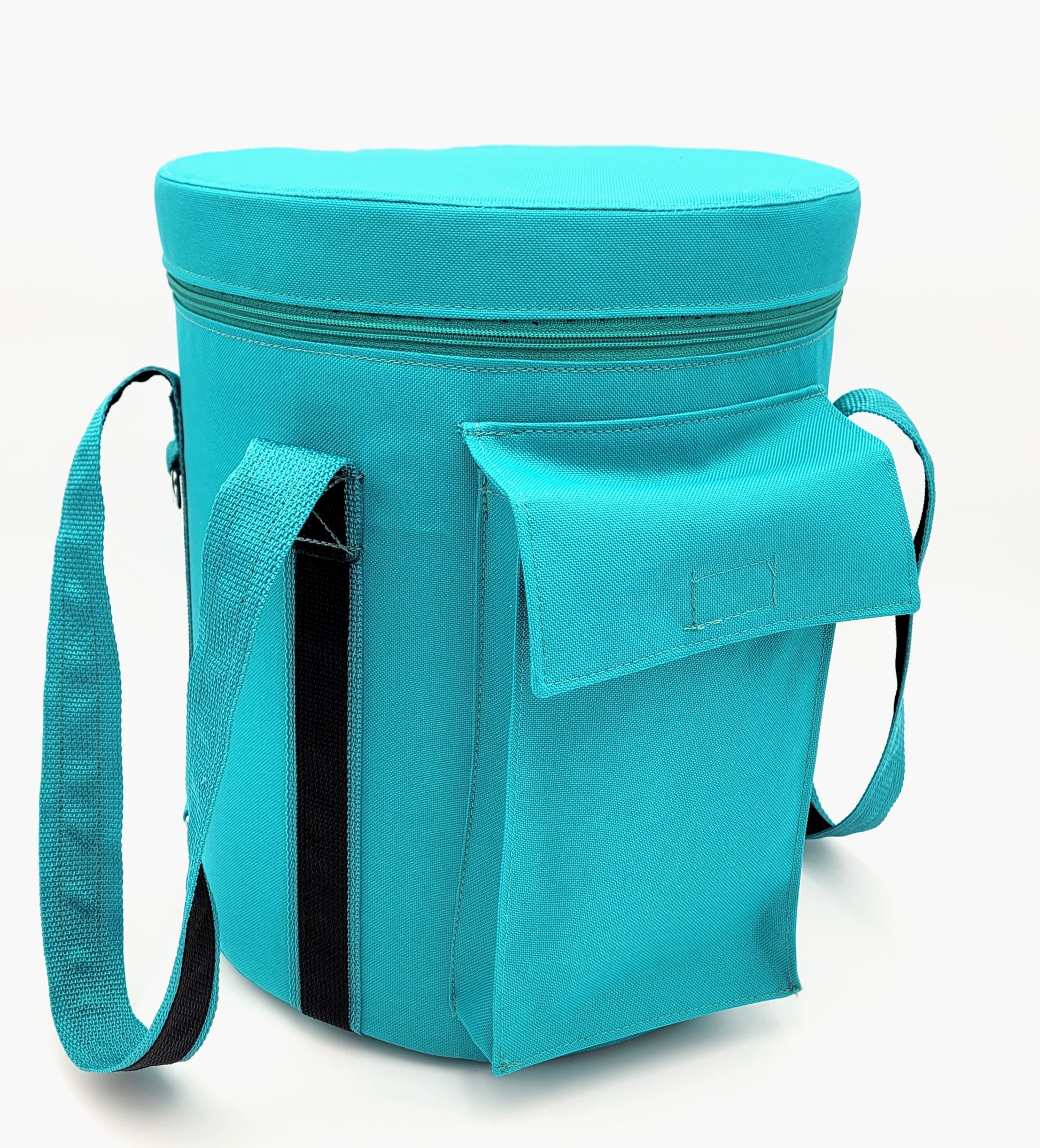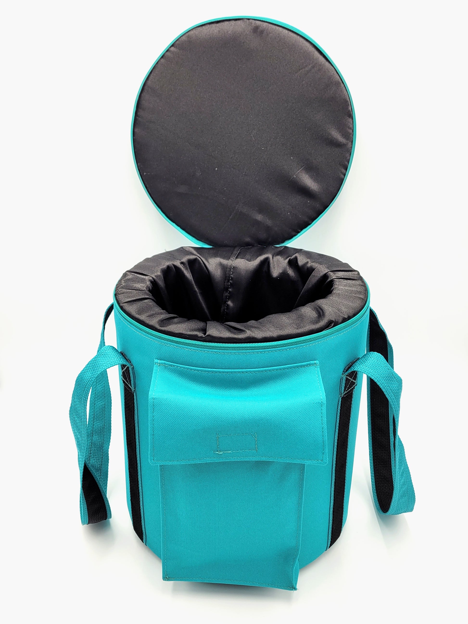 Choose your fabric color and strap combination. Straps can come in any of the shown colors and they can be a single color or with a black finish on the inside of the strap as shown in the picture. The inside fabric is always black and if you choose you can add your personal desired logo to be put on the bag.