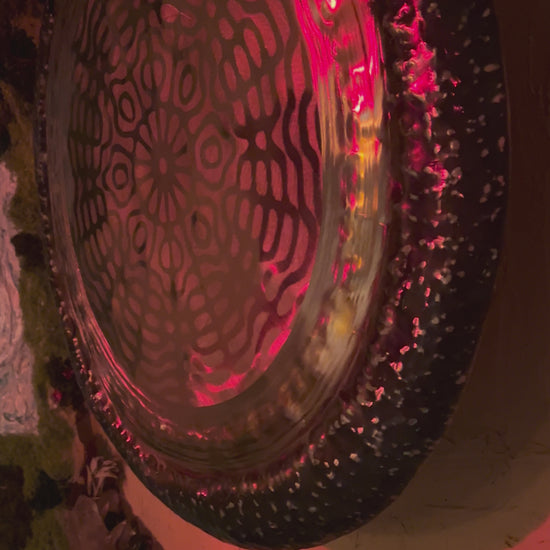 Grotta Sonora created their Deep Gong Series with a deeper, thicker rim than their other styles. The presence of a prominent rim helps to focus and accentuate the overall sound of the gong, creating a deep, focused fundamental tone with long sustain and strong presence. Each gong in their Deep gong line has its unique etching and design. Each gong is not only beautiful in sound but stands on its own as a work of visual art.