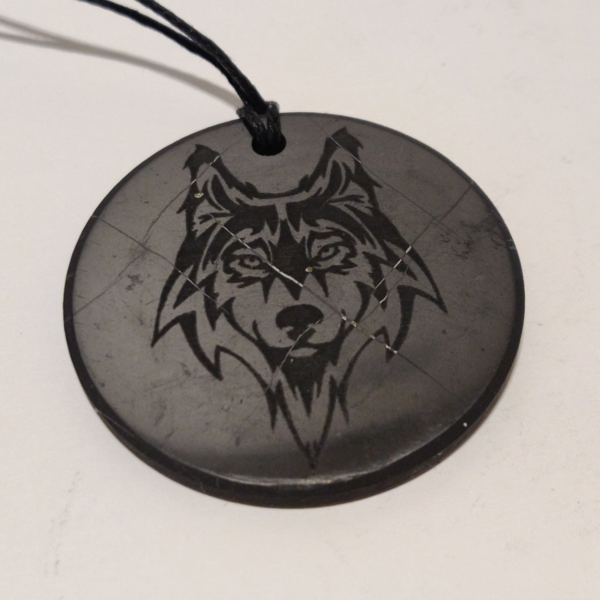 Shungite - Pendant Circle 50mm - ''Wolf''