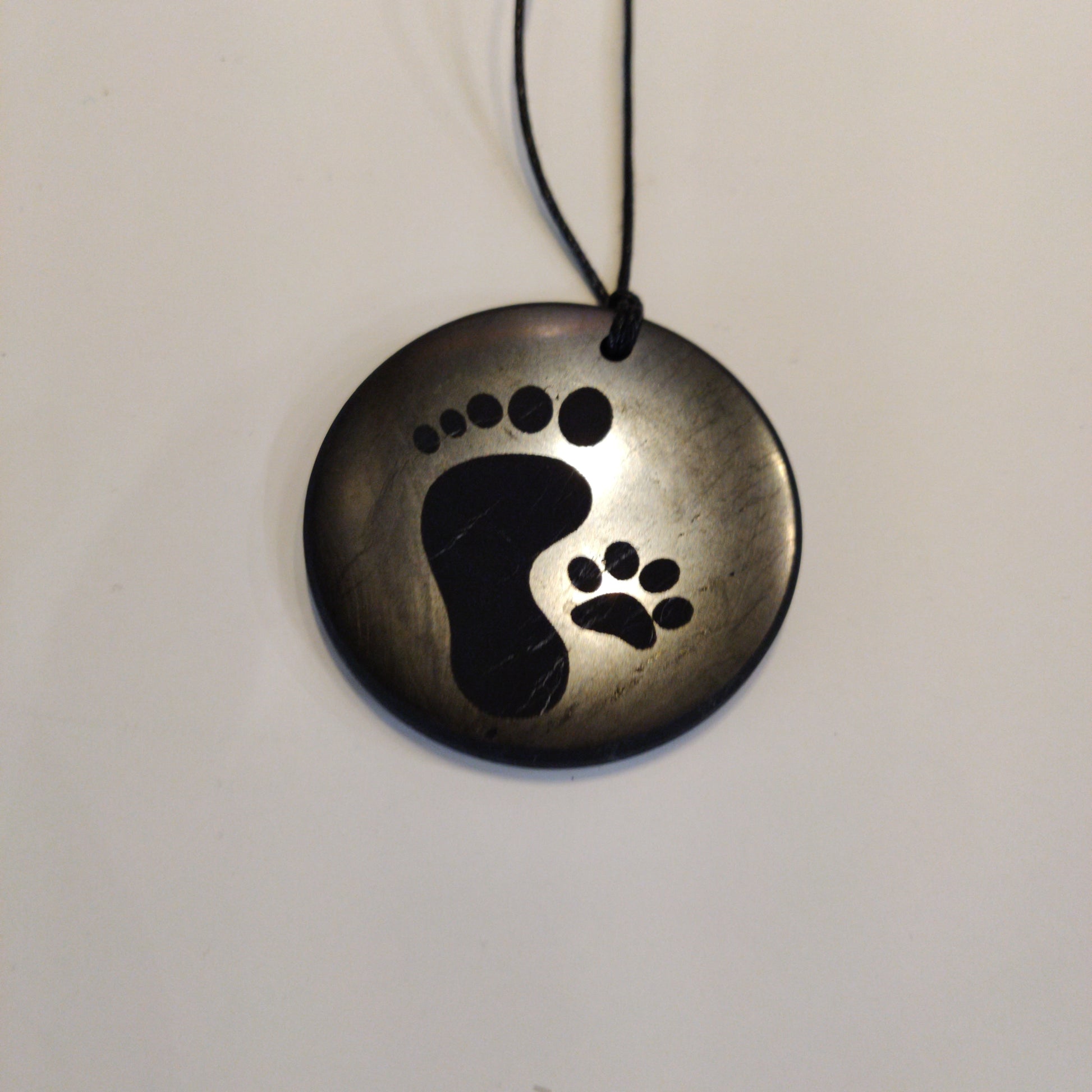 Shungite - Pendant Circle 50mm - ''Foot and Paw''