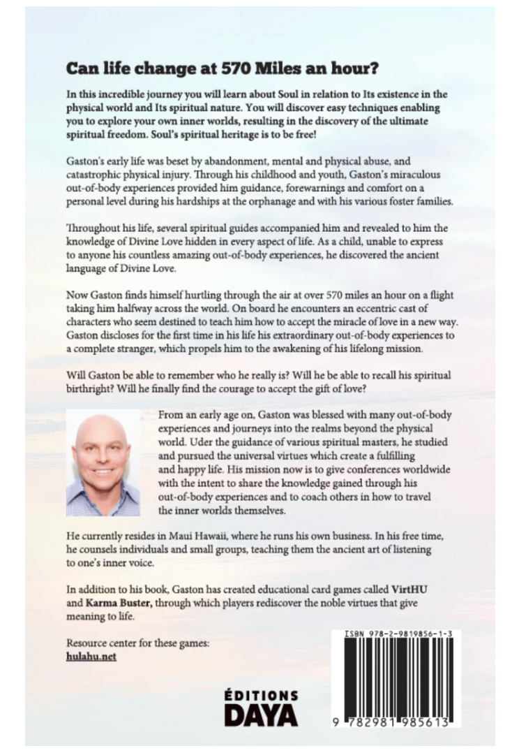 In this book, Gaston travels halfway around the world at almost 1,000 km per hour. He meets on board a variety of more or less eccentric people who seem to teach him a new way to accept the miracle of Love. For the first time in his life, Gaston reveals his extraordinary out-of-body experiences to someone who is a complete stranger to him, which reveals his life mission.