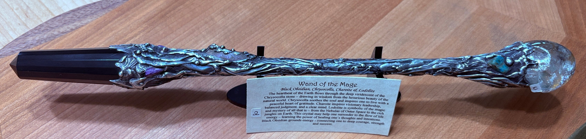 Wand of the Mage - Black Obsidian, Sulphur Quartz, Chrysacolla, Malachite, Charoite and Lodolite.(2): Available